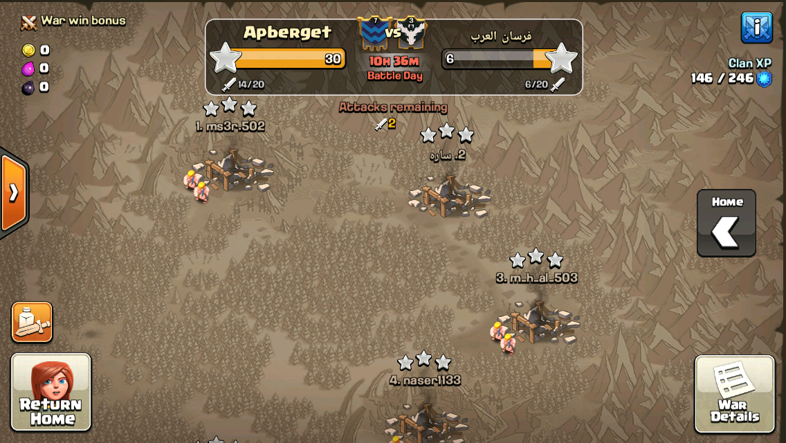 När halva tiden har gått leder vi med 26-6 och det ser ut som om det blir en enkel seger och vi lägger allt fokus mot ett perfekt krig, fullt hus, den tas ganska fort och nu har vi ca 8 attacker kvar och 3 stjärnor kvar att ta, inte så bra baser. Vi förstår att detta blir vårat första perfekta krig sedan om starten, 2016. Detta cw är det första som denna ledarstad varit med om att ta full pott på och javig har varit med i två och ett halvt år i mini och sen i Apberget. Vi är stolta över att de som är med i cw försöker göra sitt bästa och denna gången mötte vi desutom ett ganska svagt motstånd.